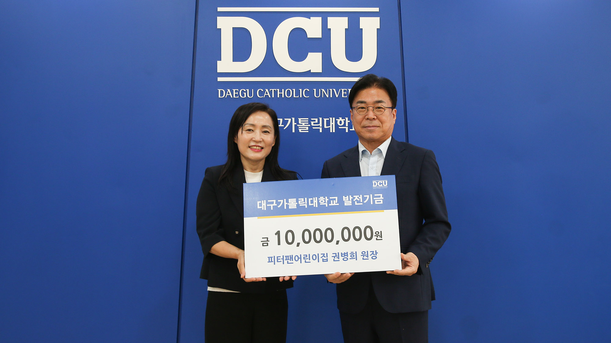 우리 대학 아동학과를 졸업하고 유아교육과에서 석사학위를 취득한 경산 피터팬어린이집 원장 권병희 동문이 8월 27일 모교 발전을 위한 발전기금 1천만 원을 기부했다.