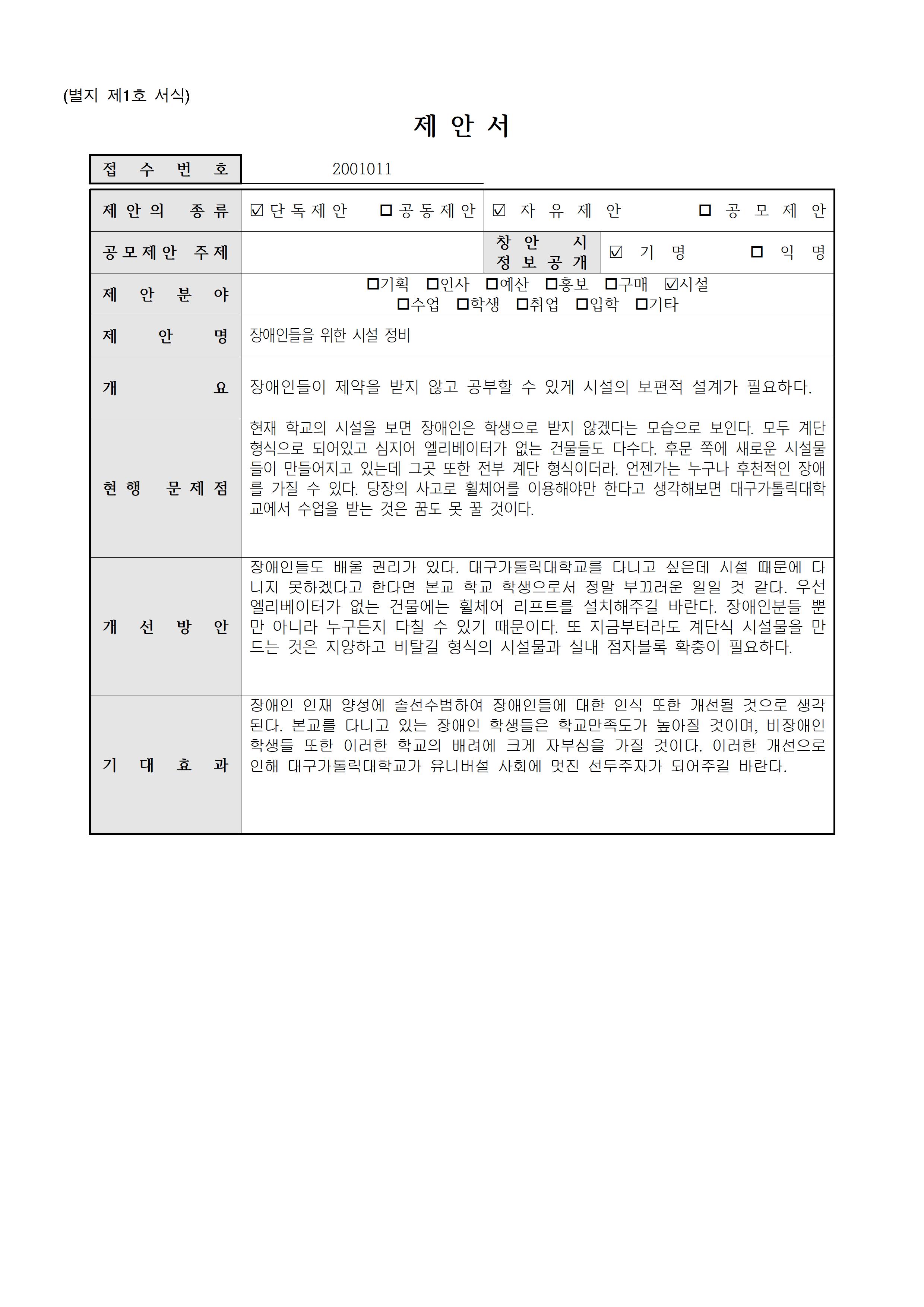 [ 학생](2001046)학생성공센터 개소에 대한 제안 건▶5등급