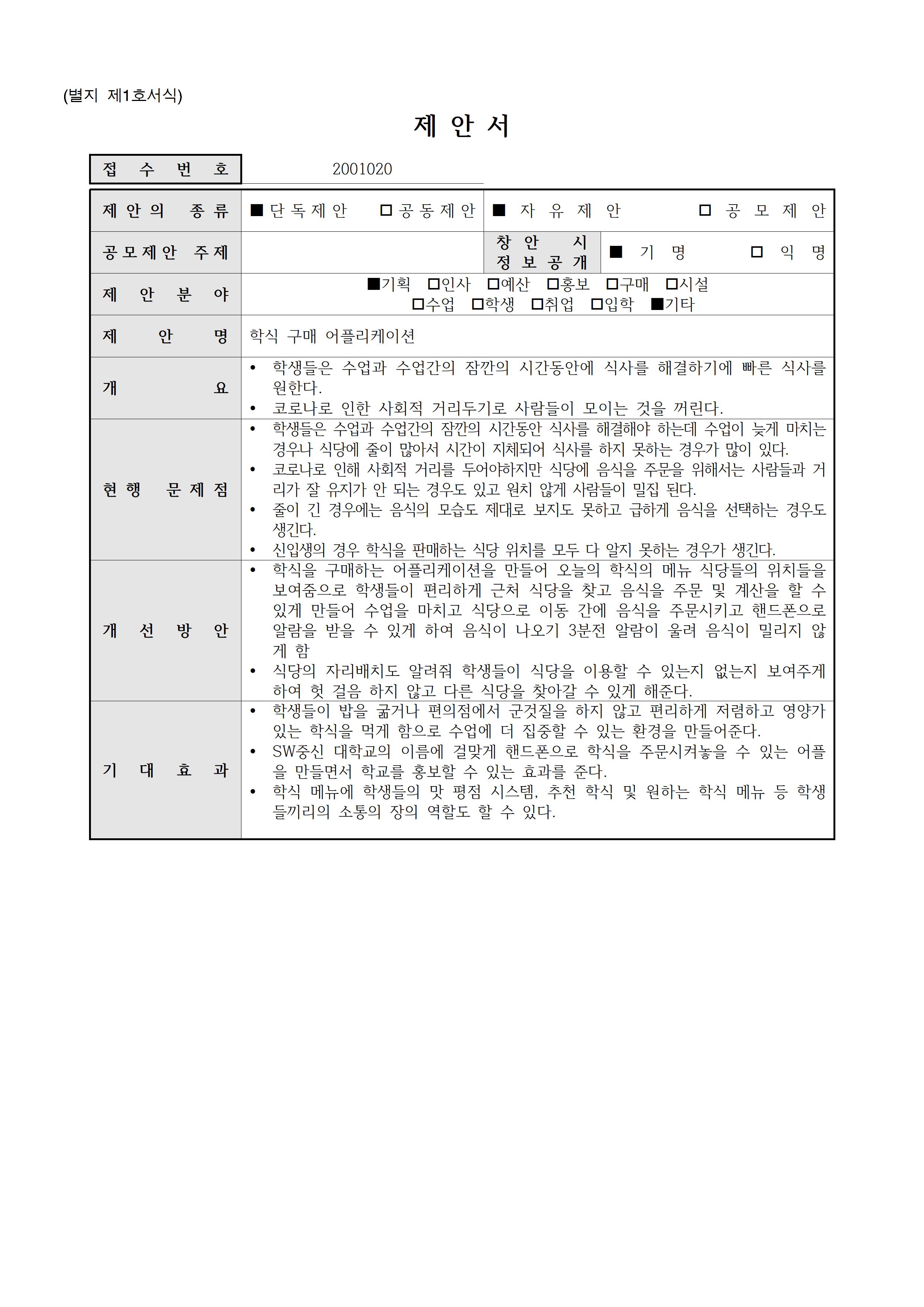 [기획,기타](2001020)학식 구매 어플리케이션▶5등급