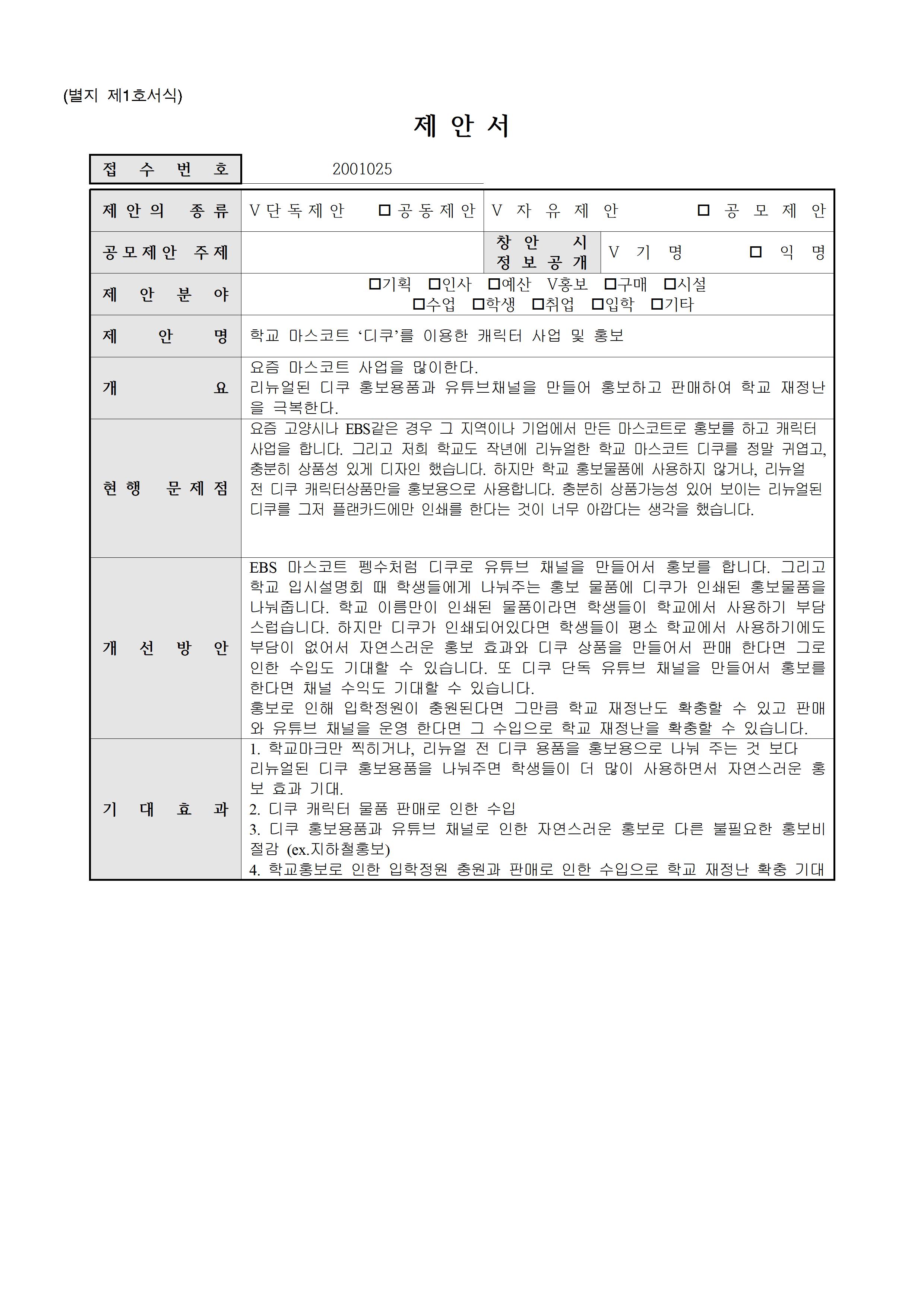 [ 홍보](2001025)학교 마스코트를 이용한 캐릭터 사업 및 홍보▶5등급