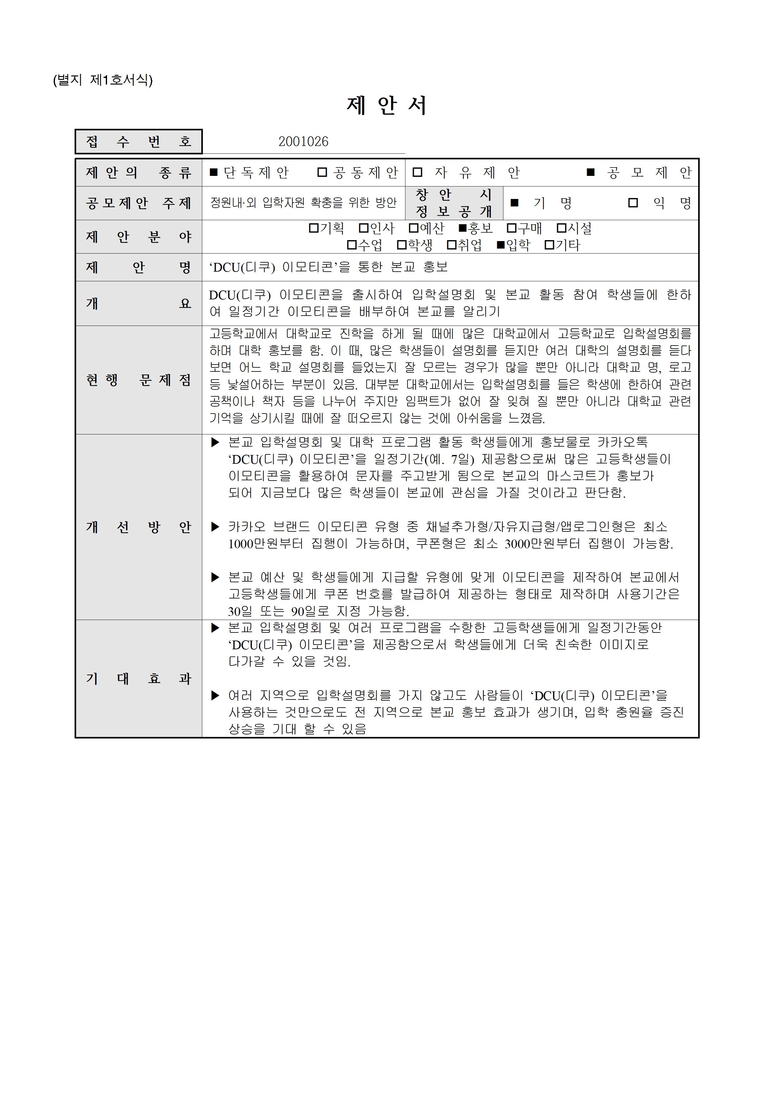 [홍보,입학](2001026)DCU(디쿠) 이모티콘을 통한 본교 홍보▶5등급