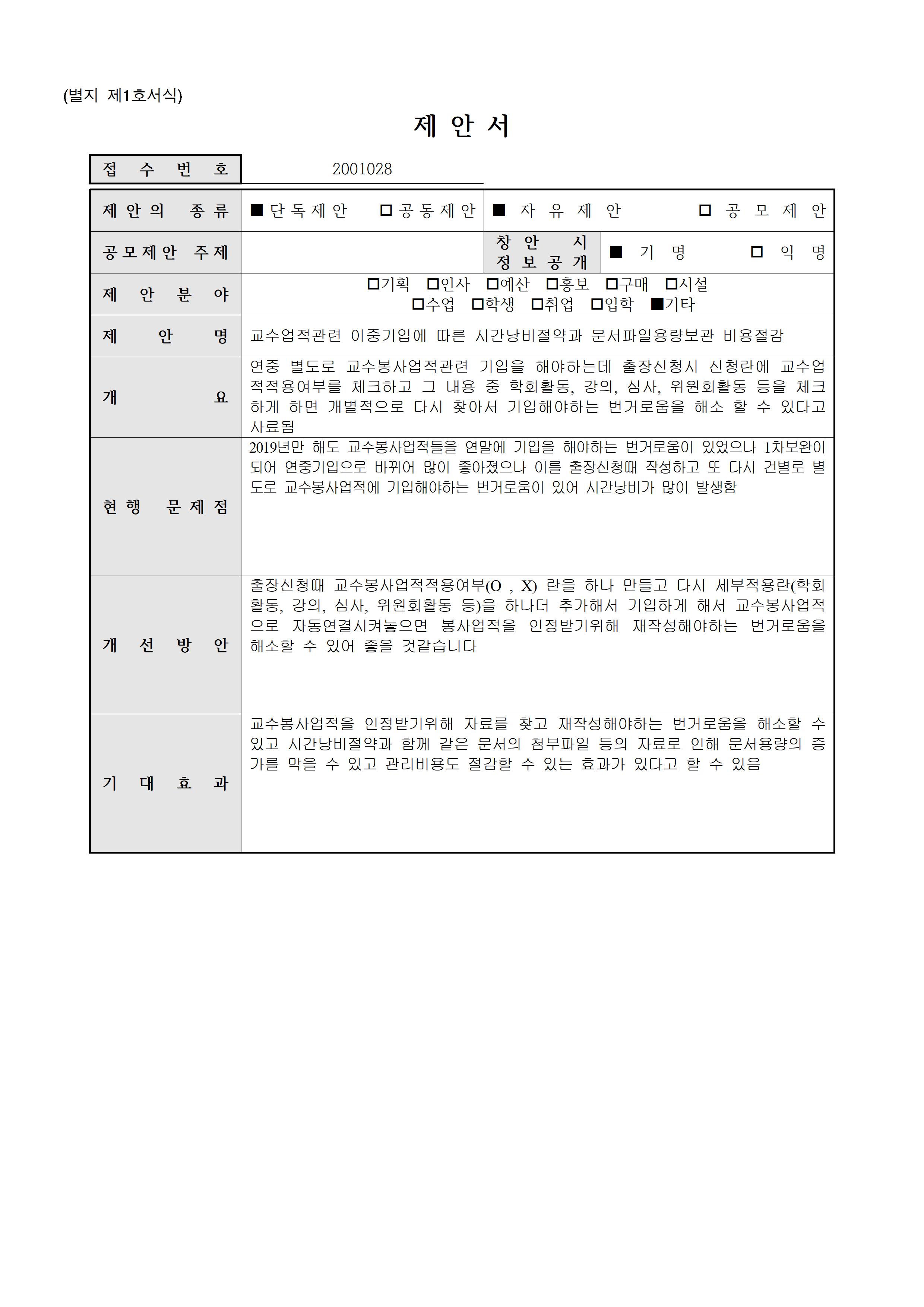 [ 기타](2001028)교수업적관련 이중기입에 따른 시간낭비절약▶5등급