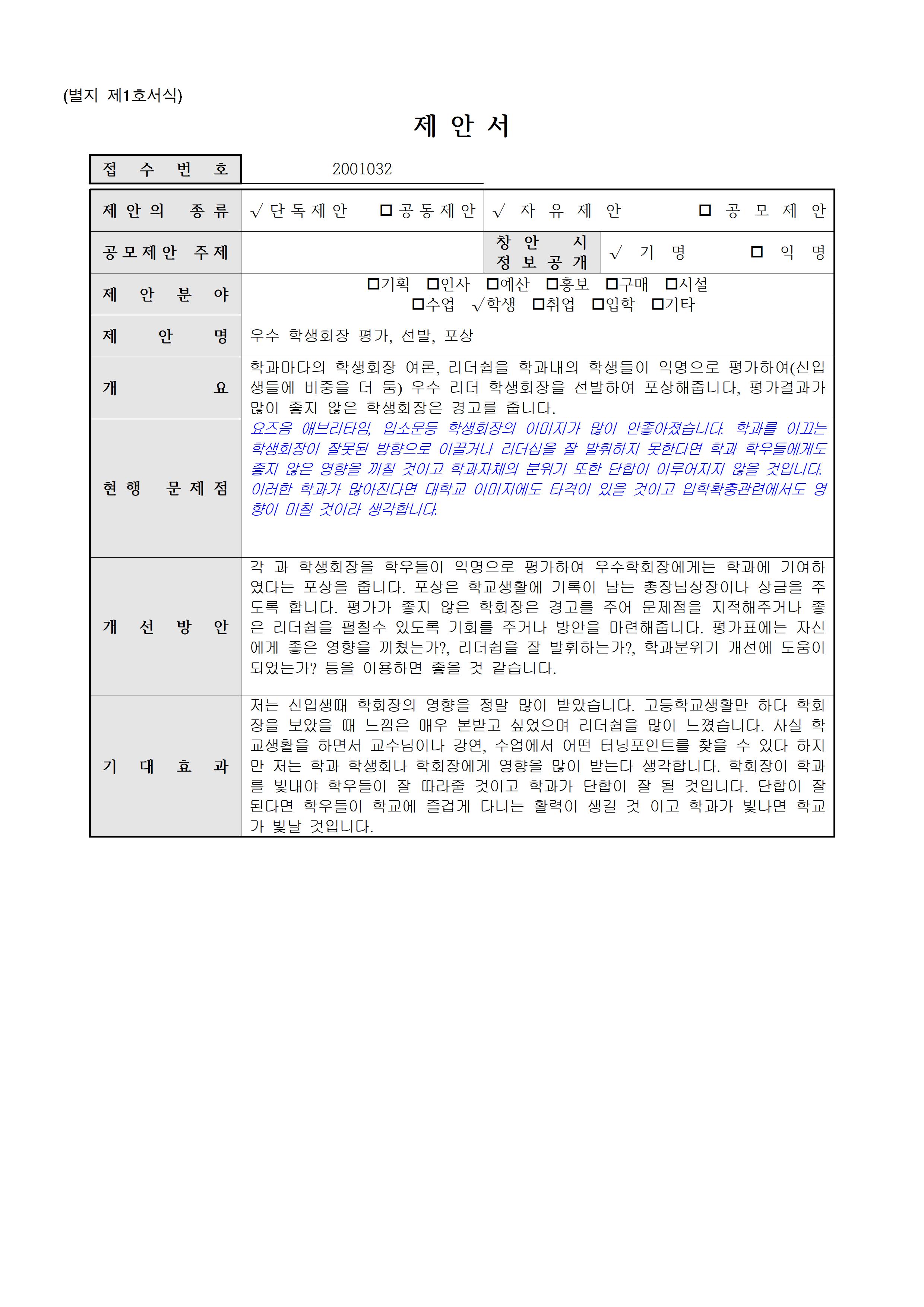 [ 학생](2001032)우수 학생회장 평가, 선발, 포상▶5등급