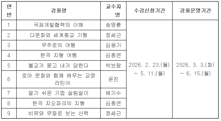 2026학년도 한국형 온라인 공개강좌(K-MOOC)수강 안내(국민대학교)