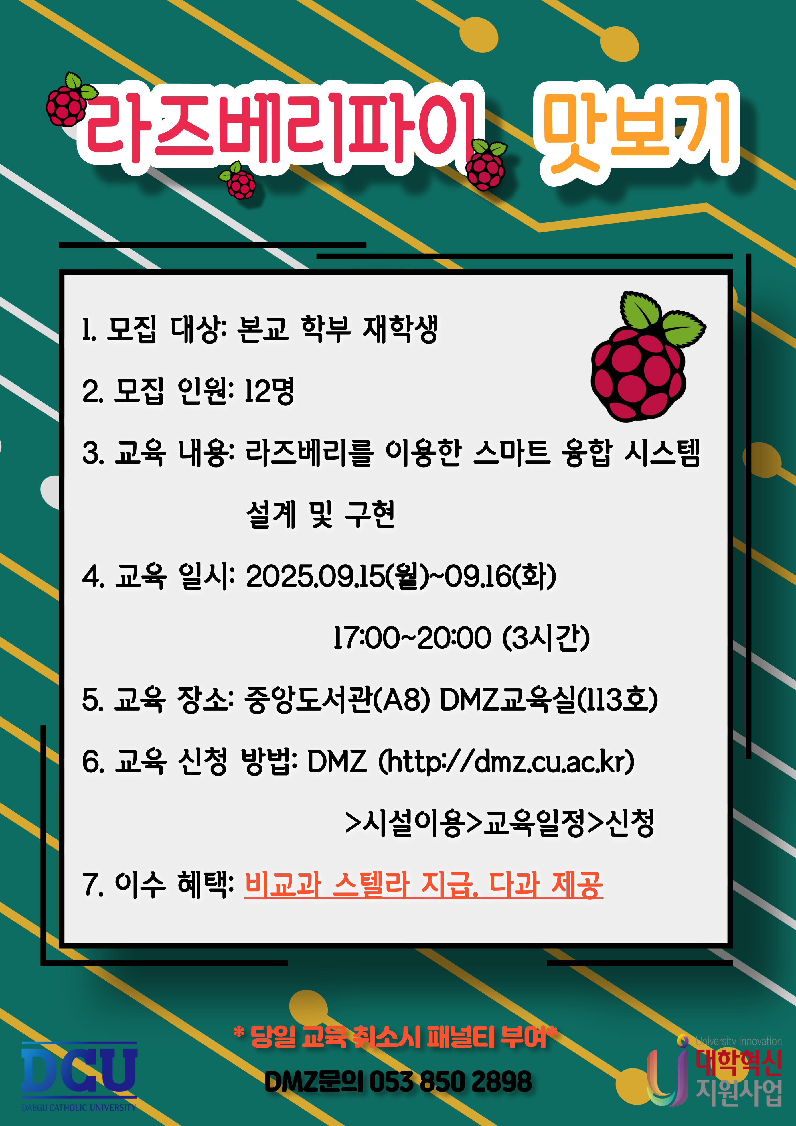 ※ 라즈베리파이 맛보기 프로그램 신청 링크: https://dmz.cu.ac.kr/program/edu/plan/view?id=790