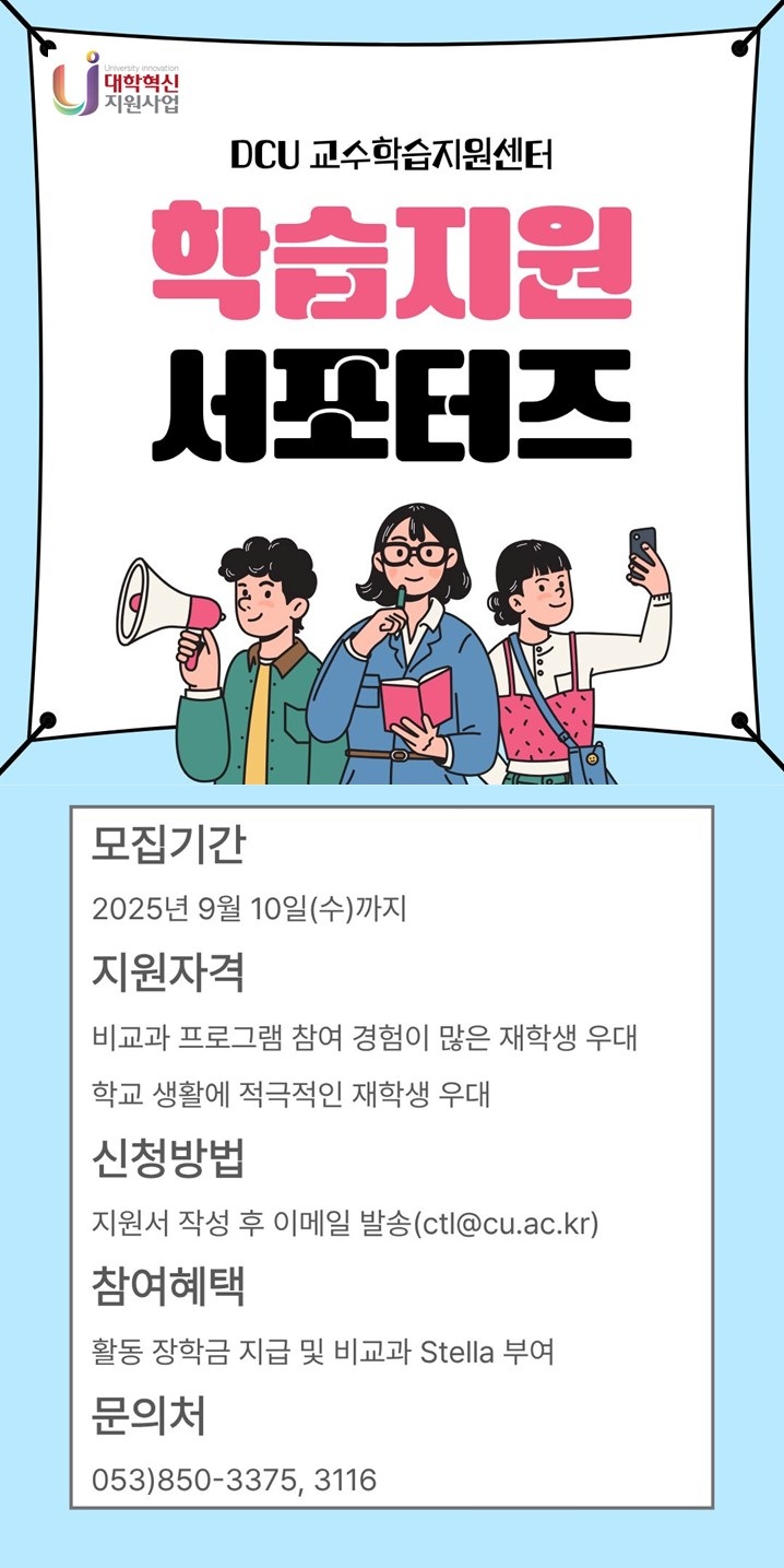 [혁신] 2025학년도 2학기 학습지원 서포터즈 모집 재안내[장학금,Stella]