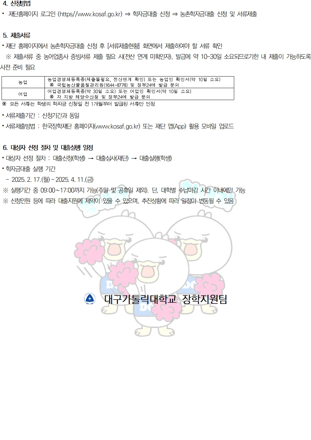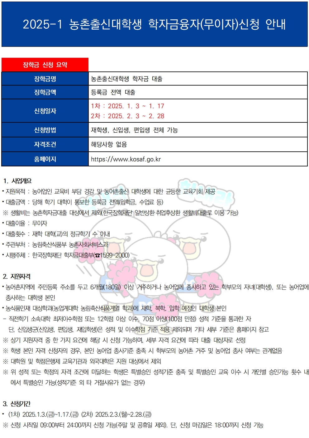 2025-1 농촌출신대학생 학자금융자(무이자) 신청 안내