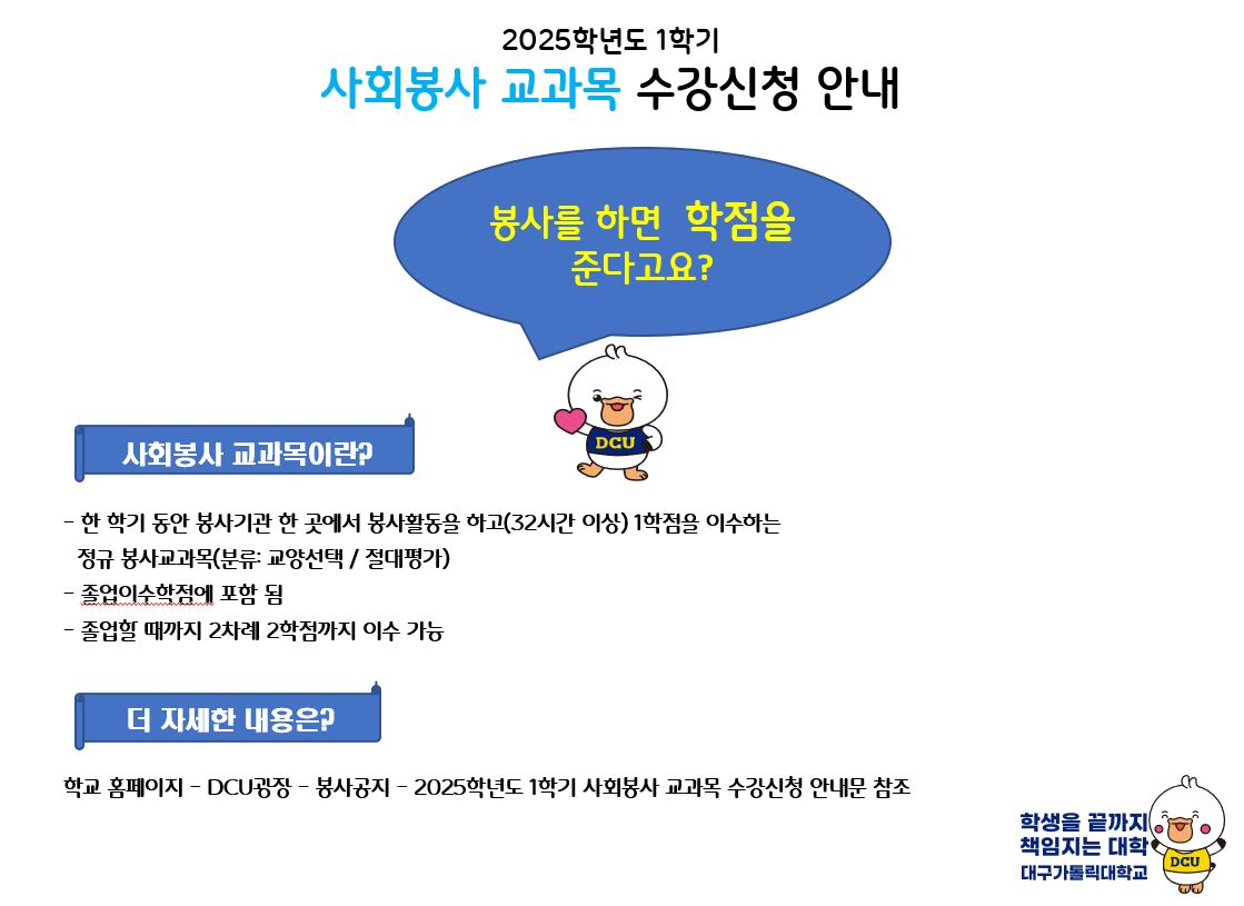 2025학년도 1학기 사회봉사(Ⅰ·Ⅱ) 교과목 수강신청 안내