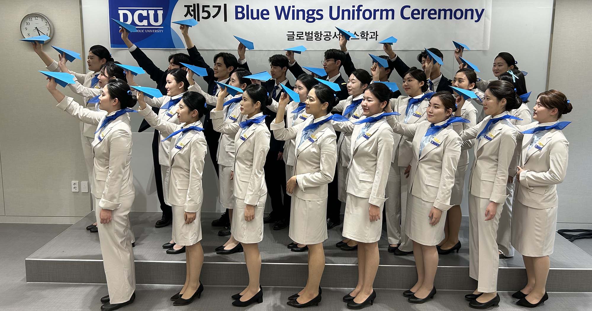 대구가톨릭대학교(총장 성한기) 글로벌항공서비스학과는 지난 4월 2일 교내 성예로니모관에서 제5기 윙수여식(Blue Wings Uniform Ceremony)을 개최했다.
