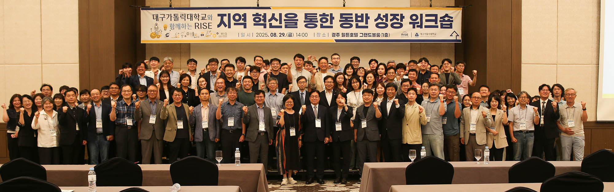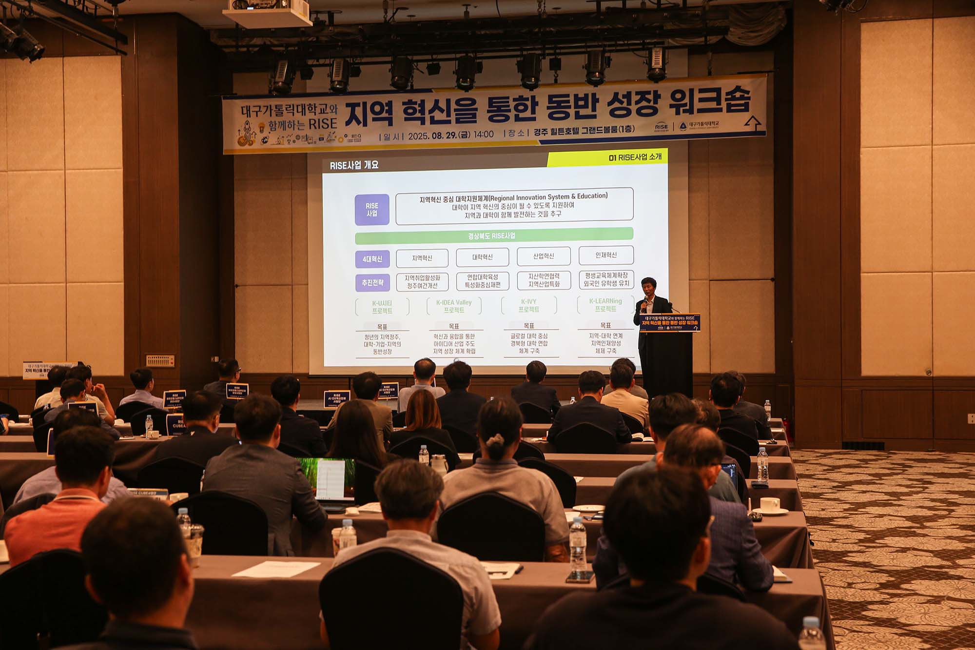 대구가톨릭대는 지난 8월 29일 경주 힐튼호텔 그랜드볼룸에서 ‘대구가톨릭대와 함께하는 RISE 지역 혁신을 통한 동반 성장 워크숍’을 열고, RISE 사업에 대한 공동 이해와 각 사업단의 추진 전략을 공유하고, 지자체와 대학 간 유기적 협력 모델을 마련했다.