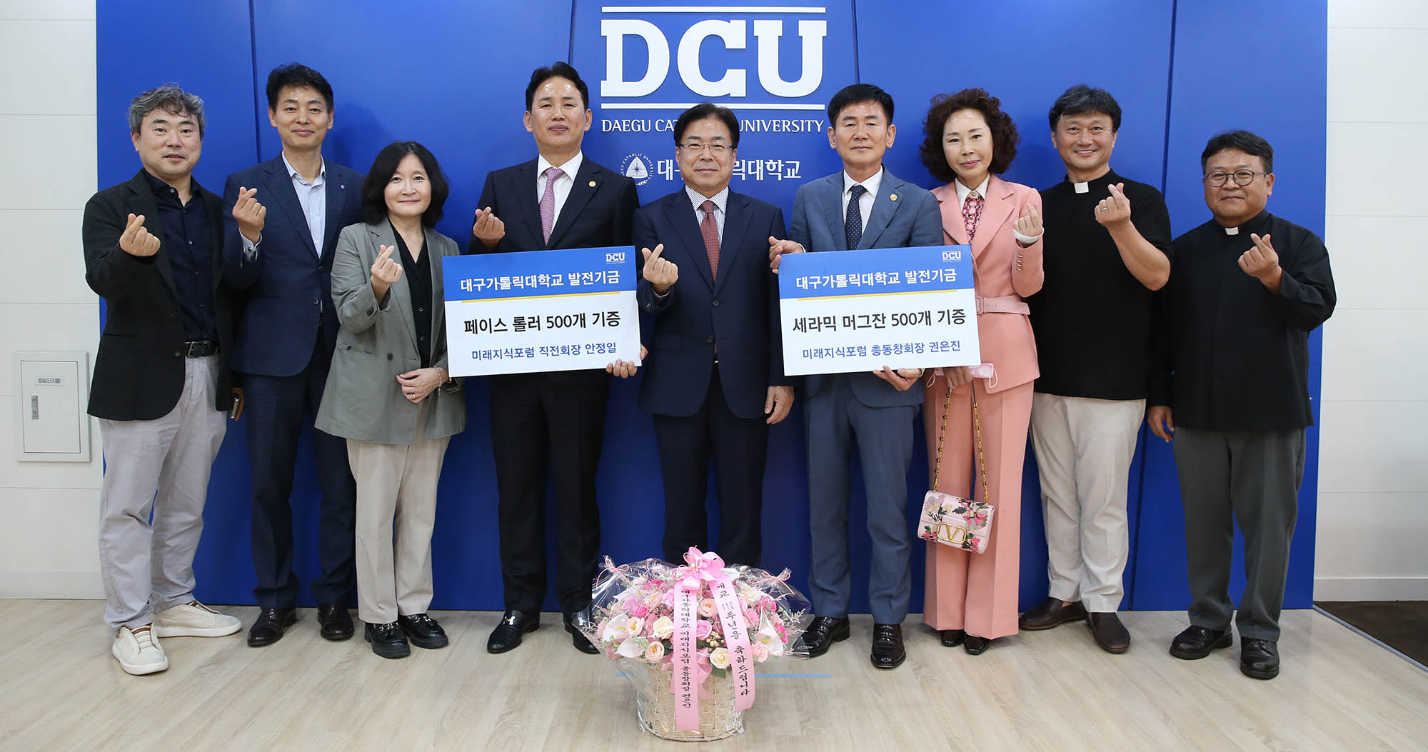 우리 대학 미래지식포럼 총동창회는 10월 15일 우리 대학에 500만 원의 발전기금과 세라믹 머그잔 500개, 페이스 롤러 500개의 현물을 기부했다.