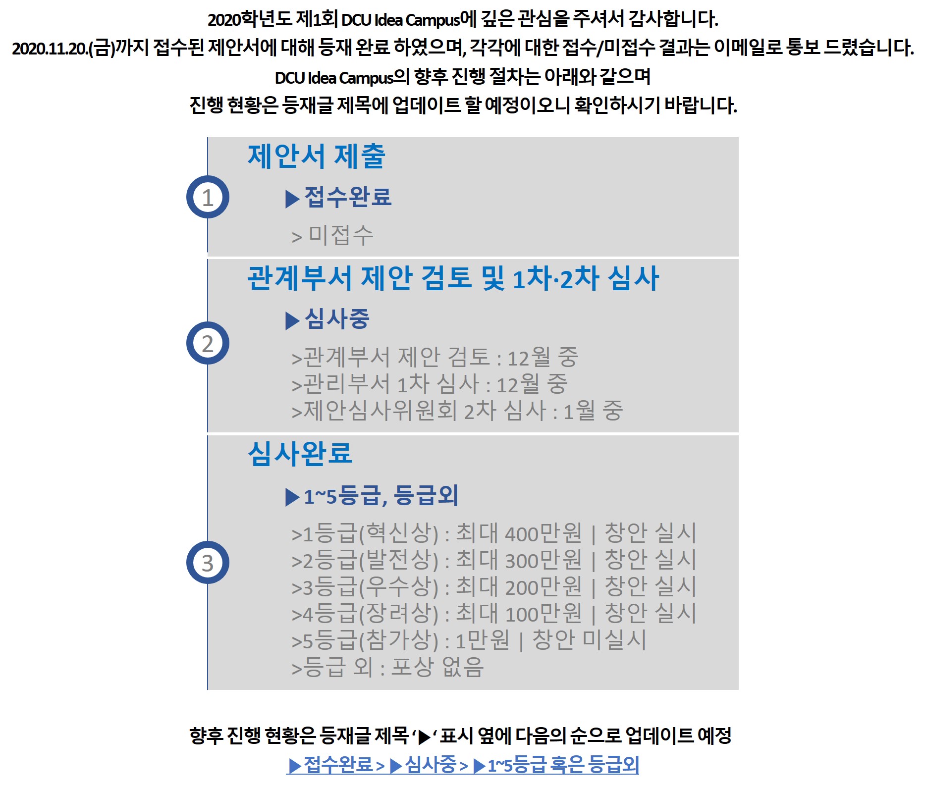 (공지) 2021학년도 상시 DCU Idea Campus 결과 안내