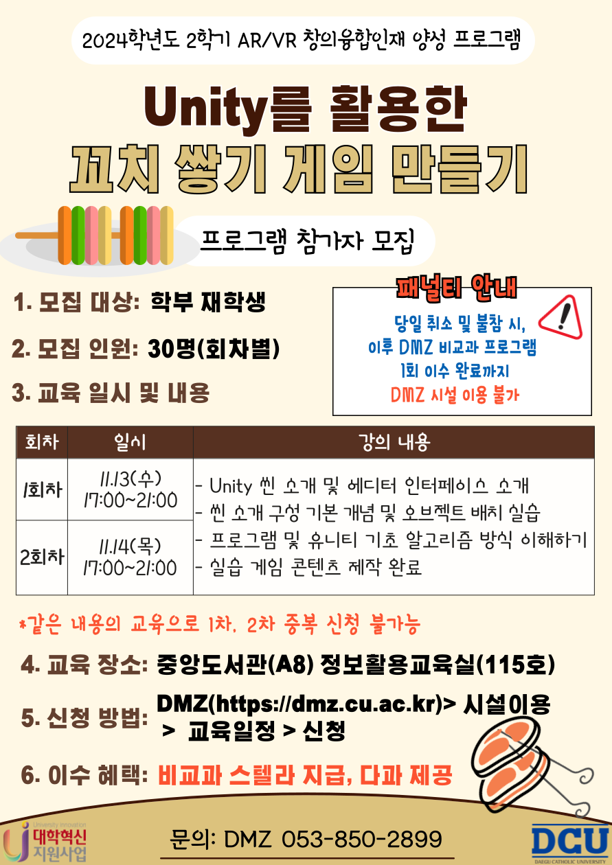 ※ Unity를 활용한 꼬치 쌓기 게임 만들기 신청 바로가기: