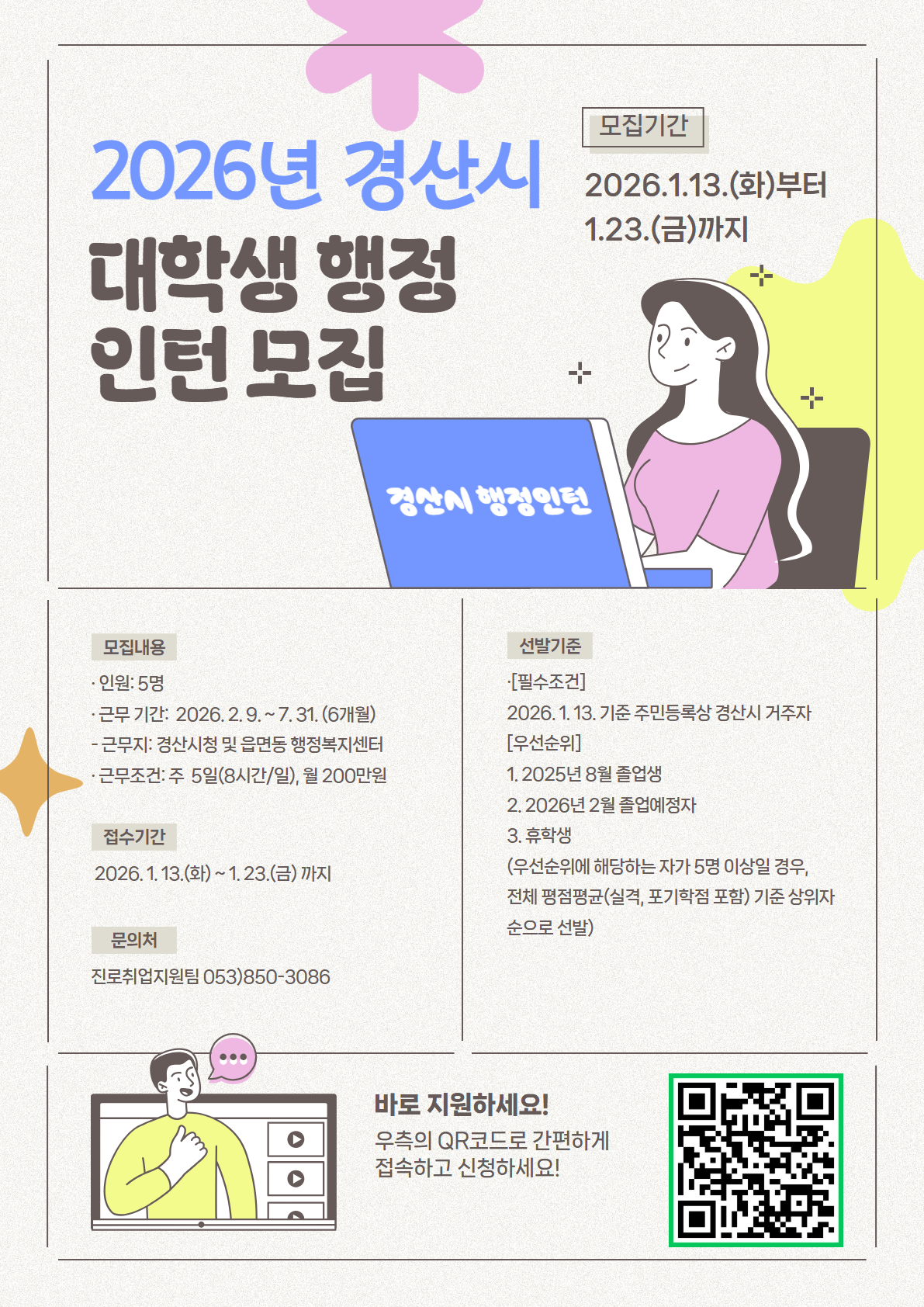 2026년 경산시 대학생 행정인턴 선발 안내(~1/23)