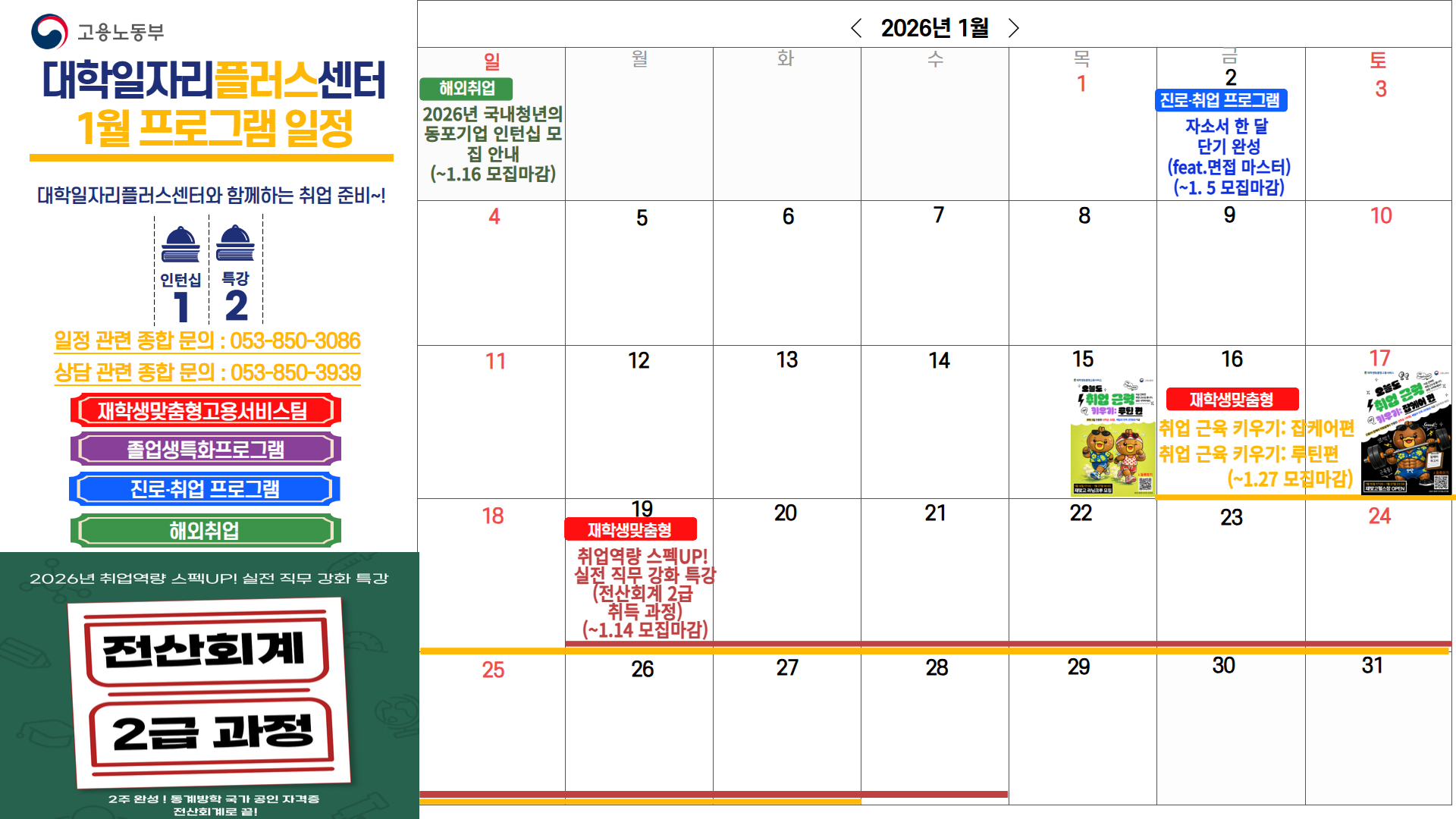 [2차년도 대학일자리플러스센터] 1월 프로그램 일정